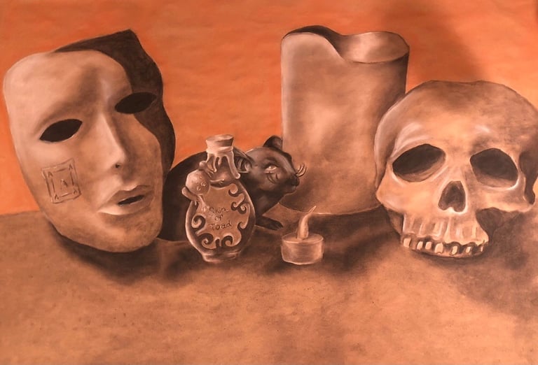 Charcoal and conte crayon on toned paper