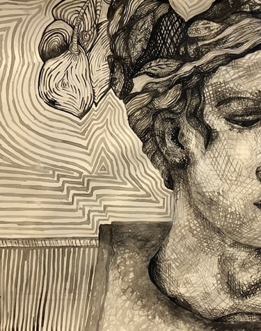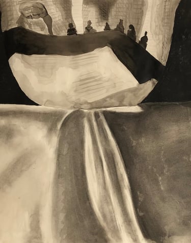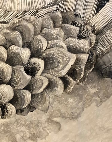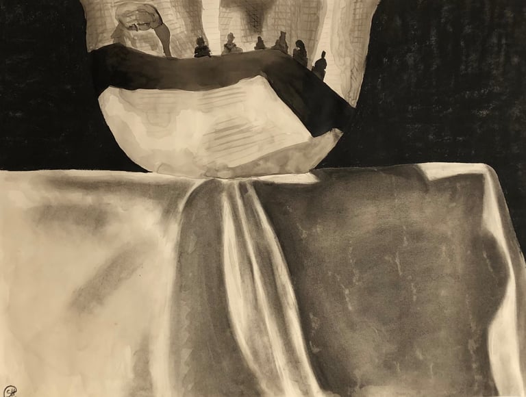 Ink and charcoal on paper