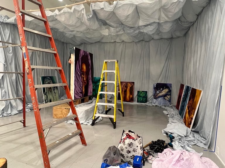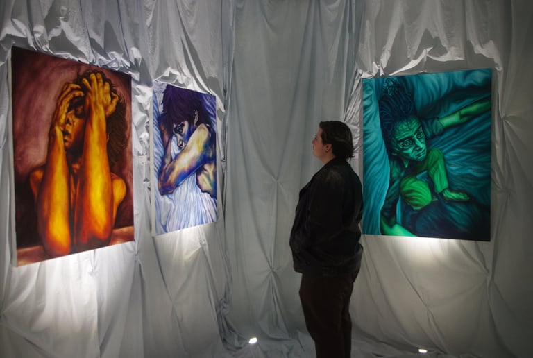 This exhibition explores the psychological effect of generational trauma, mixed with my anxieties about my personal life and the current state of the world. My work has been greatly impacted by learning about the horrors my family and friends have gone through during the war and genocide in Bosnia. Through my work I am able to process all those emotions in addition to my everyday stress, struggles and anxieties........