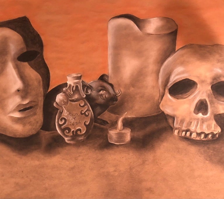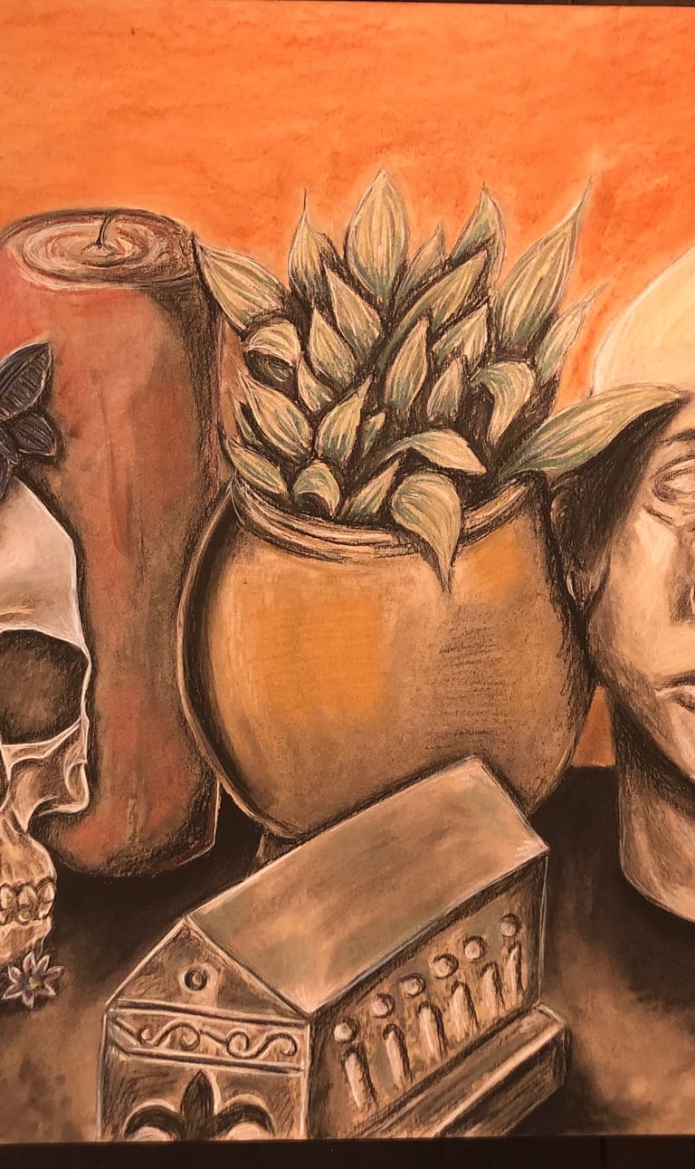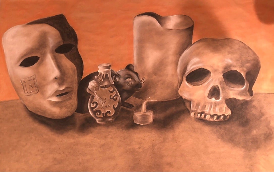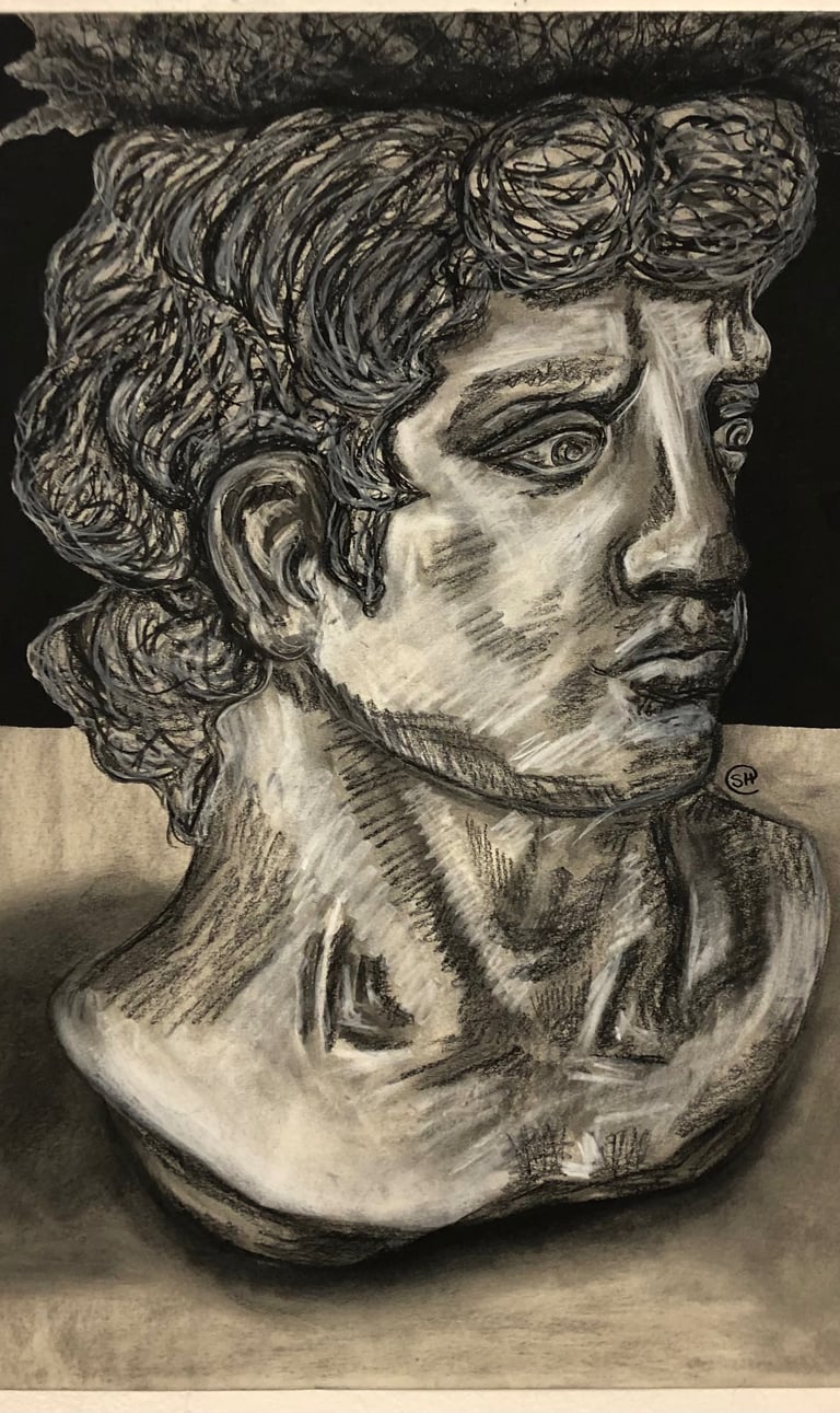 Charcoal and conte crayon on toned paper