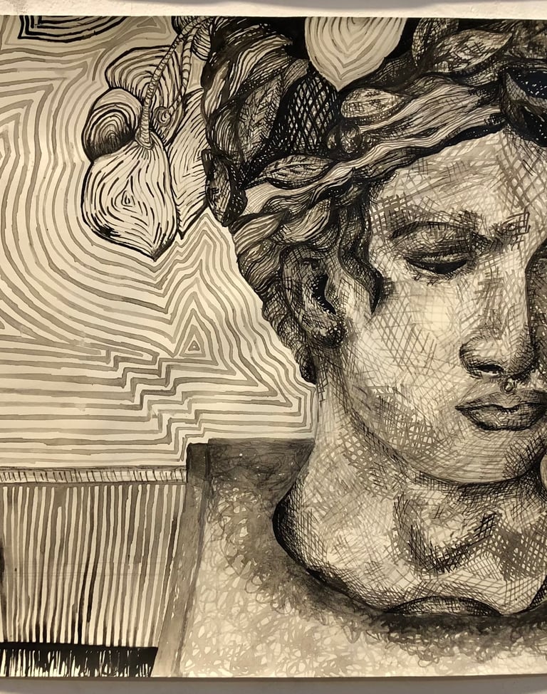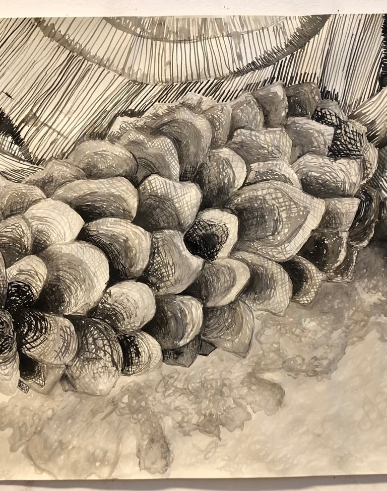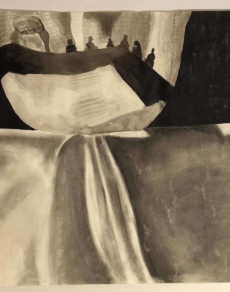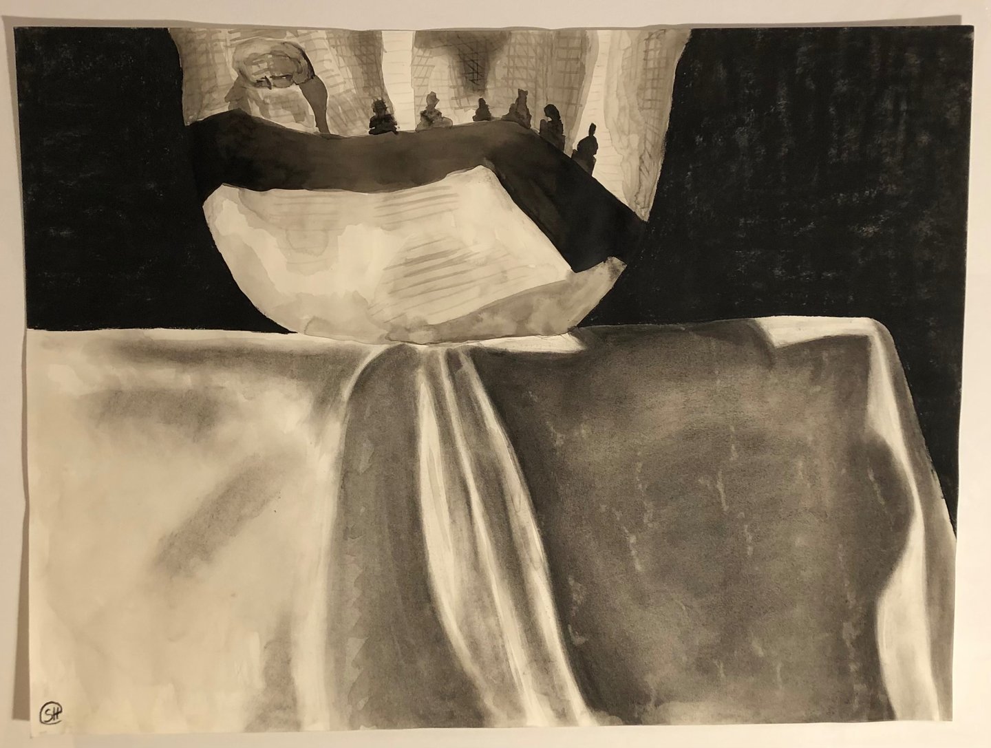 Ink and charcoal on paper