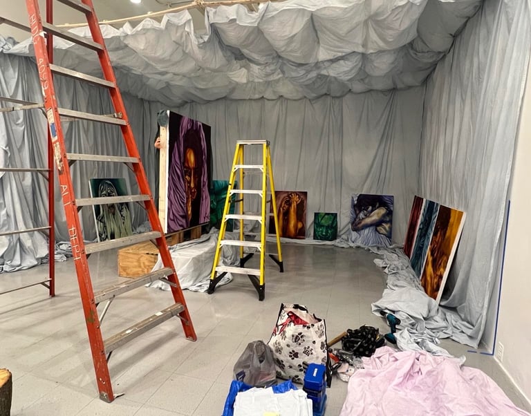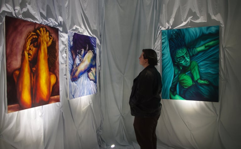 This exhibition explores the psychological effect of generational trauma, mixed with my anxieties about my personal life and the current state of the world. My work has been greatly impacted by learning about the horrors my family and friends have gone through during the war and genocide in Bosnia. Through my work I am able to process all those emotions in addition to my everyday stress, struggles and anxieties........